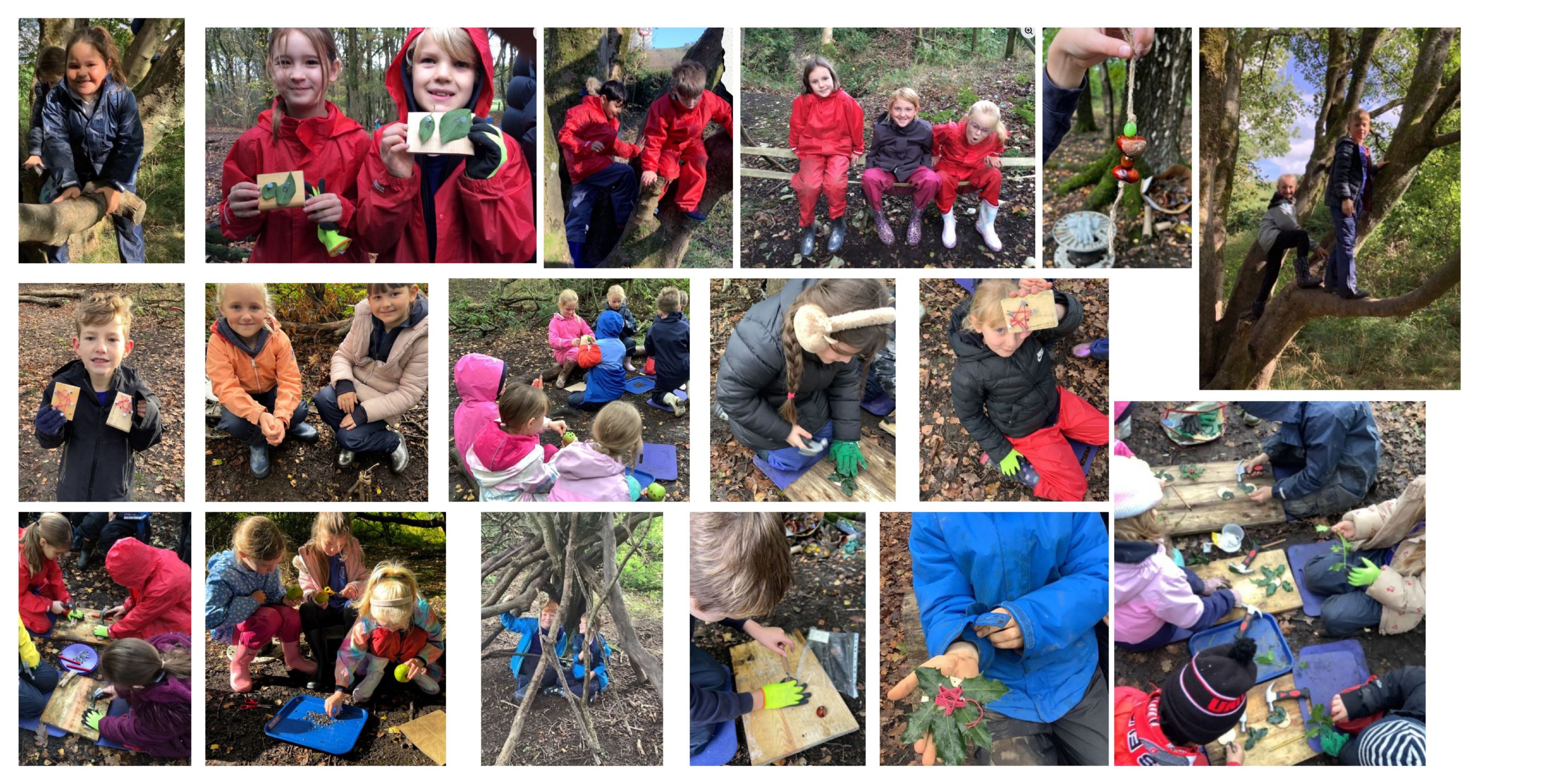 It has been a fabulous autumn term in Forest School and we have enjoyed thinking about seasons and using natural seasonal resources. We have connected to Science learning and we have learnt how to use tools for a purpose. The children have enjoyed free play using the mud kitchen, the stream, tree climbing and the slacklines. They have collaborated to make large shelters. Their play has enabled great social interaction, gross and fine motor skill development and has positively impacted on their perseverance.