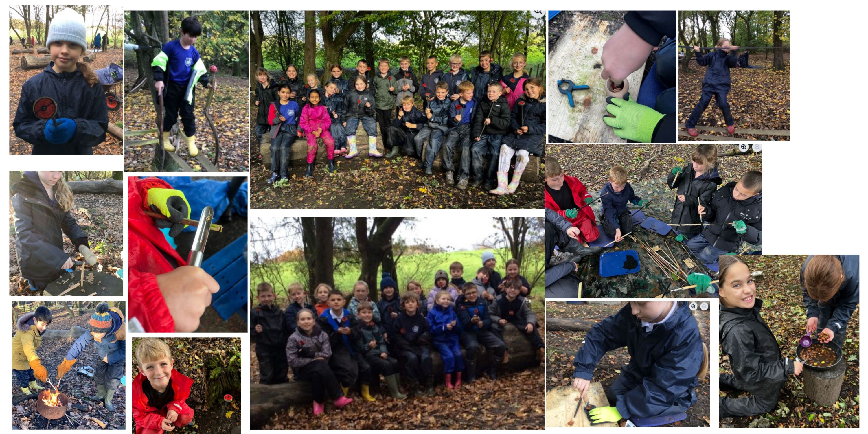 Year 5 learnt how to use a bush craft knife to whittle a stick to a point and used it for the stem of their poppy for Remembrance Day. They used a palm drill to drill holes in conkers to create a conker keyring. The children started to safely use a bush craft knife to make kindling for fires and for whittling.
