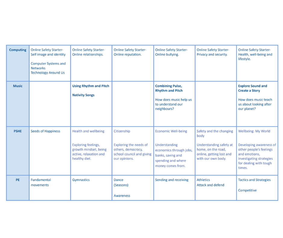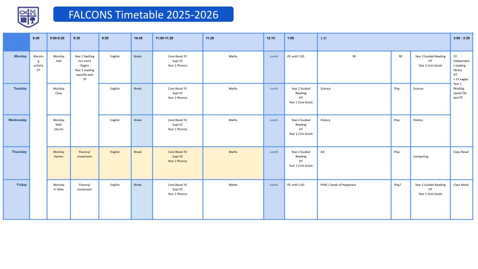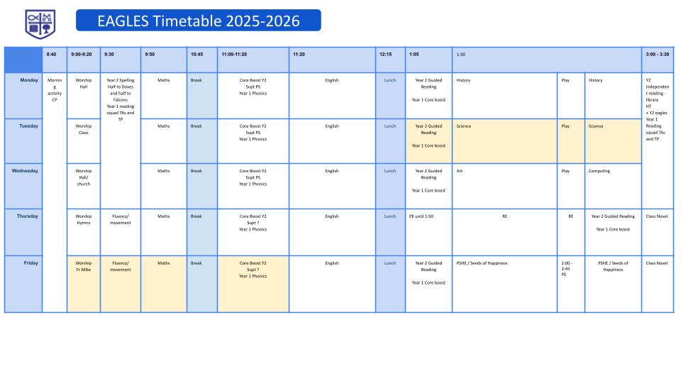 Timetables are created for each half term and ensure that we provide the coverage and time allocation for each subject.