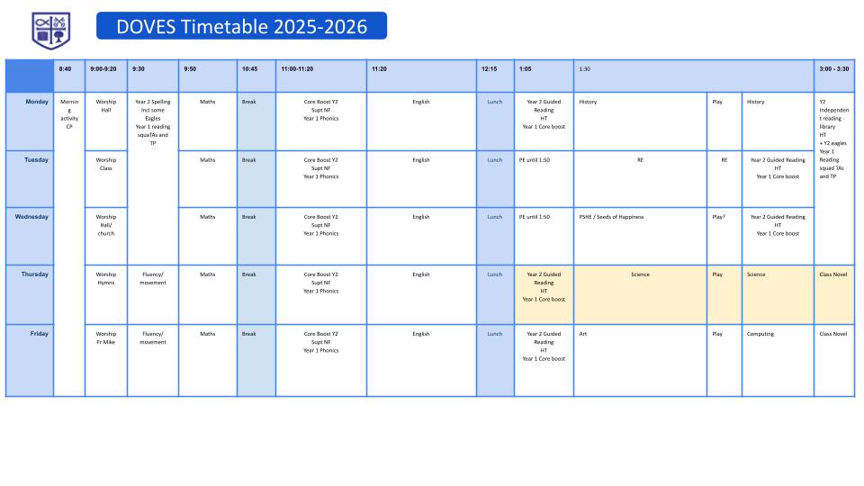 • Doves (Y1&Y2) whose class teacher is Mrs Taylor