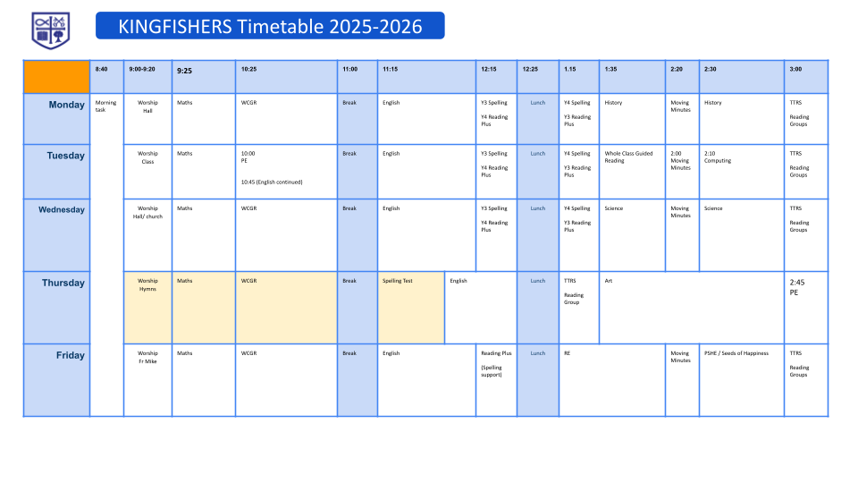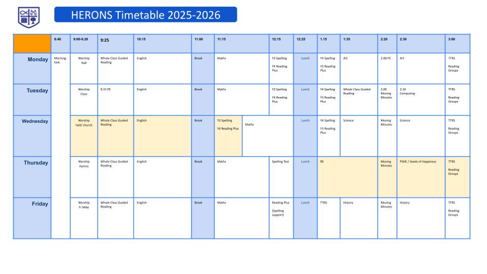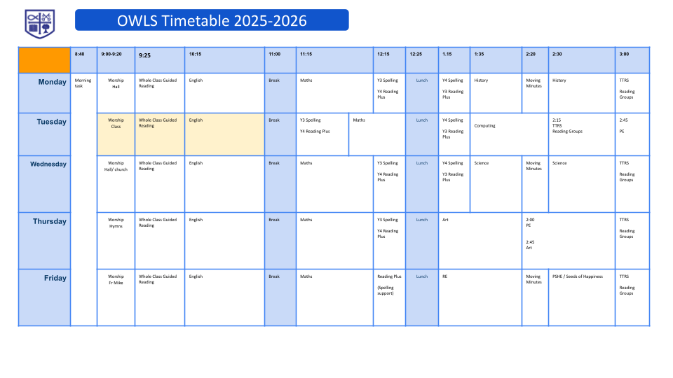 Timetables are created for each half term and ensure that we provide the coverage and time allocation for each subject.